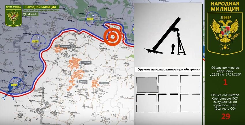 27 января 2020 Обстановка на линии соприкосновения за сутки | Карта обстрелов