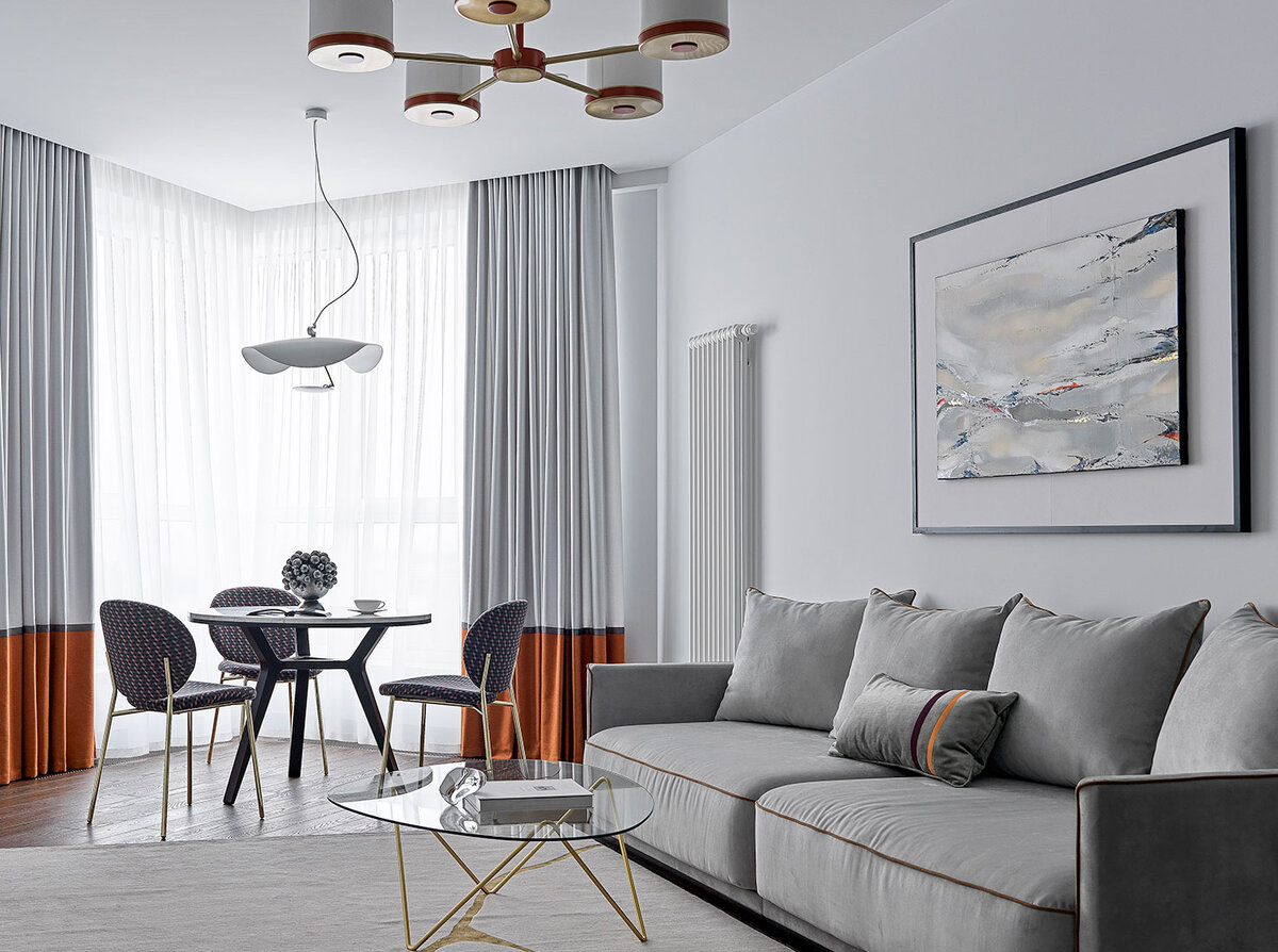 Екатерина Пулькова и Мария Игнатова из студии Makava Interiors оформили квартиру для мамы и сына-подростка. Площадь: 88 кв. метров. Расположение: ЖК «Флотилия» на Флотской улице. На концепцию повлияли название жилого комплекса, вид на Москву с 23-го этажа, геометрия пространства и, конечно, личность хозяев. «Мы стремились создать светлый интерьер, подчеркнуть мягкость заказчицы и сформировать комфортную среду для ее взрослеющего сына», — говорят авторы о своей работе. Заказчица — финансовый директор, мама 15-летнего подростка. Она хотела светлый, теплый и комфортный интерьер, в котором есть ее приватная территория — со спальней, гардеробной и ванной комнатой». Со слов заказчицы было очевидно, что сыну-подростку также требовалась личное пространство. «Он просил сделать не детскую комнату, а жилье для молодого человека: в темных цветах, со «взрослой» кроватью и большой рабочей зоной», — рассказывают авторы проекта. Дизайнерами были сформированы следующие помещения: прихожая, лаунж (гост