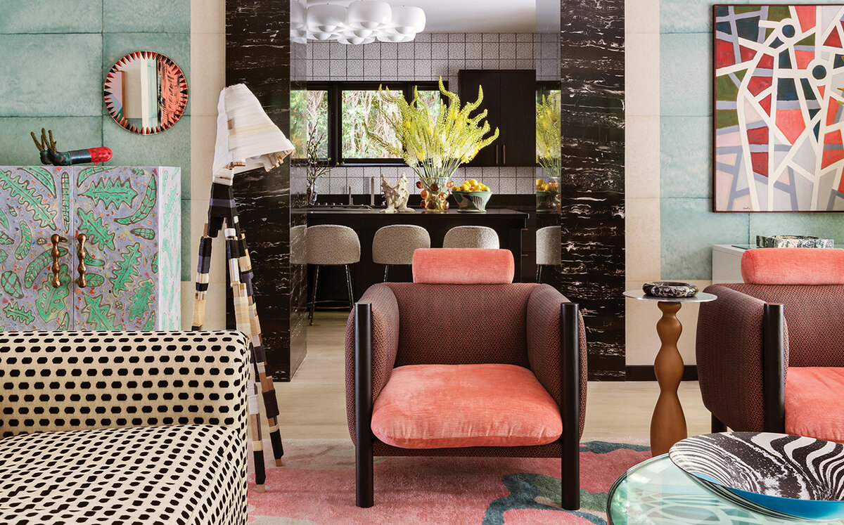 Розовый и зеленый в интерьере гостиной: 33 решения