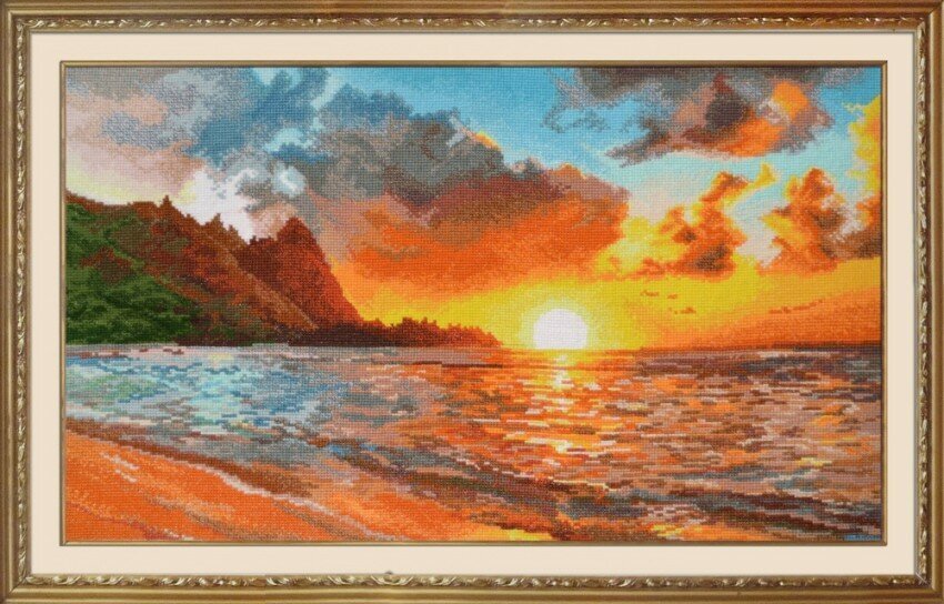 Добрый день. Рада всех приветствовать на своем канале. Продолжаю делится процессом вышивки "Золото заката" от фирмы Овен. часть неба уже как-то прорисовывается. Сама по себе работа очень интересная, хотя и несколько монотонно вышивать большие части неба. Начала процесса можно посмотреть тут. Нитки... Мне не очень нравятся.. В ходе работы сильно путаются и образуются катышки. На больших отшивах - прям беда. Но в целом - здорово! Забрала из багетной мастеркой свою работу "Живой огонь" : Она заняла достойное место на стене! Поддержите меня в моих трудах! Ставьте палец вверх! Будет много интересного!