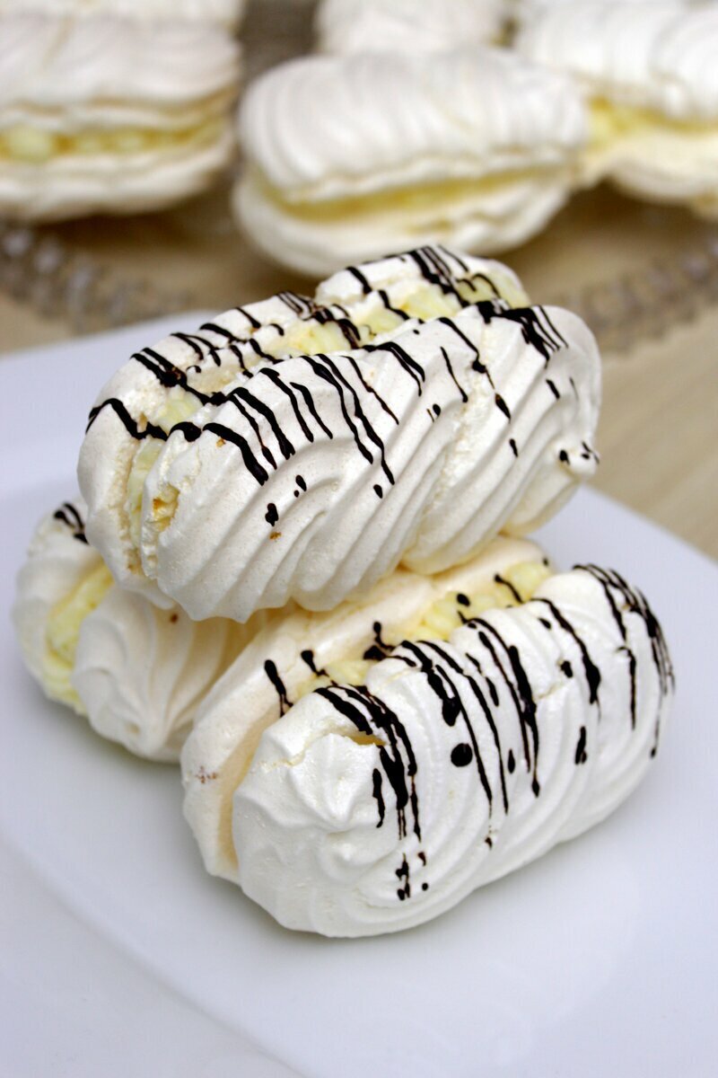Ингредиенты: Способ приготовления: Взбить миксером, в сухой чистой кастрюле охлажденные белки до плотной массы. Затем продолжая взбивать белковую пену, всыпать сахарную пудру. После этого к пышной, воздушной, белоснежной белковой пене добавить ваниль. Тщательно взбить. Взбитые белки переложить в кондитерский мешок. Противень застелить пергаментной бумагой. На противень с помощью кондитерского мешка выложить небольшими порциями пирожные, на расстоянии друг от друга (десерт делать в виде палочек). По желанию можно посыпать сверху порубленными орехами. Духовой шкаф разогреть до 80-100 градусов. Убрать безе в духовку. Печенье сушить 1,5-2 часа, дверцу НЕ ОТКРЫВАТЬ. Затем выключить духовку, пирожные оставить в духовке до полного остывания, примерно ещё на 1,5 часа. Готовое безе переложить на тарелку, при желание смазать кремом и соединить две половинки, а затем можно подавать к столу. Приятного Аппетита! Подписывайтесь на КАНАЛ и ставьте лайк!
