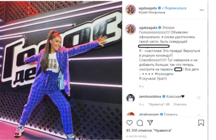 Актриса Агата Муцениеце сообщила фанатам в Insatgram, что станет со ведущей Дмитрия Нагиева в новом сезоне «Голос».Она вновь возвращается на сцену масштабного шоу, которое откроет перед ней дверь в большой шоу-бизнес. Радуется Муцениеце еще по одному поводу. По слухам в Сети брак с Павлом Прилучным оказался для актрисы не самым лучшим опытом, доходило до того, что СМИ не раз писали о побоях на Агате от домашнего «тирана». Не удивительно, что ей надоело терпеть, и Муцениеце бросила Прилучного ради карьеры на «Первом». Получается, что теперь уже телеведущая попросту «сбежала» от мужа на сцену, где будет проводить очень много времени. К тому же, появление в эфирах может служить своего рода защитой от возможных избиений, с которыми до этого звезда не раз была замечена папарацци. Попытки Агаты найти работу в Китае не увенчались успехом. Поэтому она могла слезно попросить знакомых звезд «протолкнуть» ее на сцену, чтобы, наконец, стать независимой от супруга. Поэтому, теперь Агата снова проб
