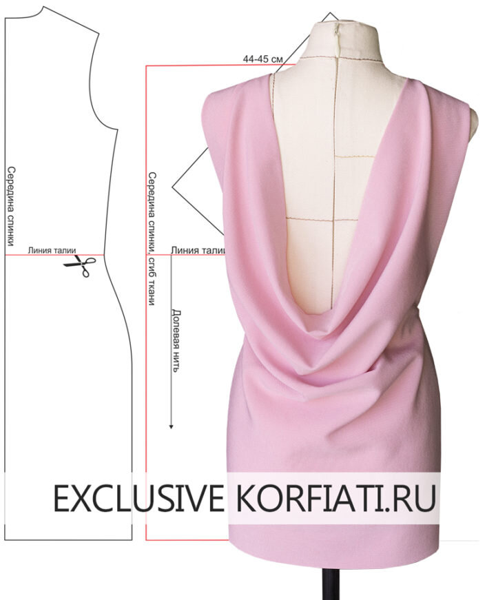 Драпировка по спинке изделия — как на платьях, так и на блузках, всегда выглядит очень женственно и изящно. Существует большое количество самых разнообразных вариантов драпировок, и в этом уроке мы хотим рассмотреть один из самых простых и популярных из них, а именно — драпировку, известную всем мастерам под названием «качели». В зависимости от конструктивных особенностей моделирования и свойств материала, из которого сшита модель, выглядеть такая драпировка в готовом изделии может абсолютно по-разному. В этом уроке мы предлагаем вам пять готовых решений выкроек с драпировкой по спинке. Совет! Для моделей с драпировками лучше всего подходят трикотажные полотна или мягкие, легко драпирующиеся ткани, например, креп-жоржет. В этом уроке показаны общие методы создания конструкции спинки изделия с драпировкой. Вы можете использовать предложенные выкройки в неизменном виде или менять их по вашему усмотрению. Все макеты выполнены на масштабных манекенах. В зависимости от материала, который