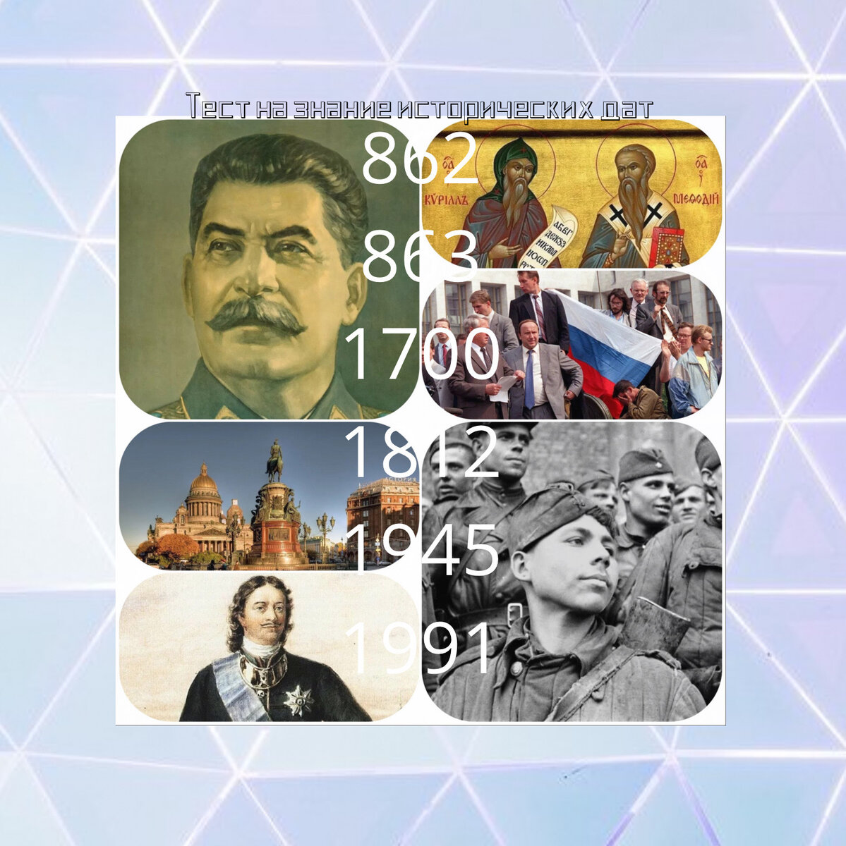 Эти исторические события во многом предопределяли судьбу нашей страны. Они были важными вехами в её развитии. Помните ли Вы, когда они произошли?