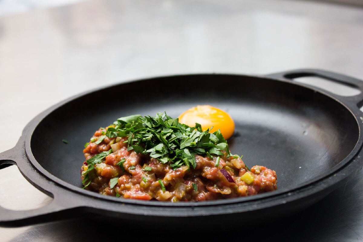 Тартар — популярная холодная закуска. Канонический рецепт предполагает, что сырое говяжье мясо рубят кубиками, формируют в «шайбу» и без всякой термической обработки подают со специями (луком, зеленью, горчицей) и сырым желтком. Из чего готовят тартар?