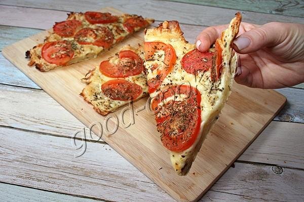 После запекания получается блюдо, отдалённо напоминающее открытый пирог. Нет, не пиццу.