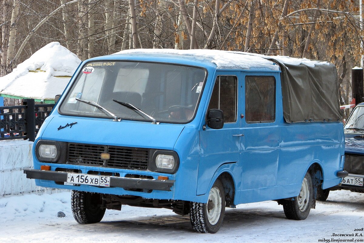 Поговорим поподробнее про одну из этих машин - велотехничку РАФ-2909. Для удобства перевозки велосипедов из микроавтобуса РАФ-2203 сделали пикап с двойной кабиной, в которой размещалось до 5 человек, включая водителя. В задней, открытой части кузова машины перевозились велосипеды, при необходимости прям