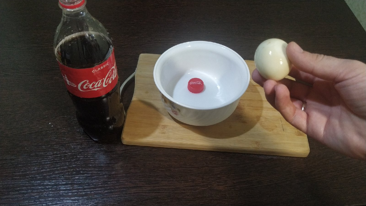 Нам рассказывают что кока кола - это что то сверх опасное, убирает ржавчину и растворяет всё что ей попадается на пути! На этот эксперимент меня вдохновил канал, на котором показано, что кока кола за 24 часа разъело полностью кожуру мандарина! Сегодня я докажу вам, что всё это мифы! Мы проведем самый обычный эксперимент с куриным яйцом! Берем куриное яйцо (я решил взять отварное) Кладем в глубокую тарелку Почему яйцо отварное? Эксперименты в скорлупе проводят все! Я решил немного добавить оригинальности моему эксперименту! Заливаем кока колой куриное яйцо Оставляем на 24 часа! Через 24 часа - яйцо немного окрасилось, но с ним нечего страшного не произошло, поэтому я решил убрать тарелку на балкон и забыл про нее, через неделю я достал с балкона тарелку с яйцом замоченным в кока коле и что же я увидел? Достаем яй