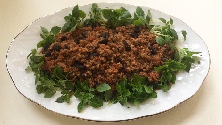 Мы сварили черную фасоль. Красная, рябая — еще лучше. Говядину перемололи в мясорубке с луковицей.