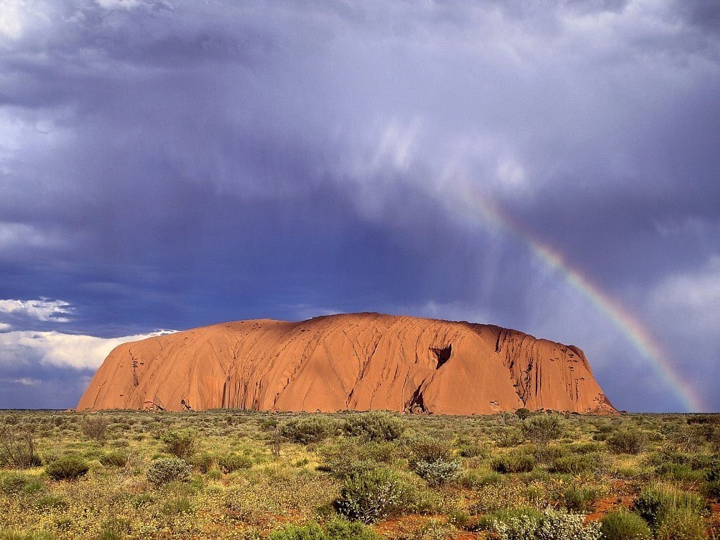 Вершина Улуру (по-другому - Айерс-рок) возвышается в северной части Австралии. Это краснокаменный монолит, который прорезает плоскость равнины, словно плавник огромного кита-убийцы. Для местных аборигенов загадочная вершина - святое и почитаемое место. За 680-миллионный период существования вокруг Улуру сложилось множество историй и легенд, а сама она входит в список ЮНЕСКО. Гора Улуру расположилась в национальном парке на северных территориях аборигенов - там, где зародилась Жизнь. В первую очередь, впечатляют ее размеры – гора представляет собой монолит около 9 км по периметру. В далекие годы из-за тектонической активности глина с гравием были буквально спрессованы и вытолкнуты на поверхность. Скала состоит из почти вертикальных слоев очень прочного красного песчаника, который прорезают глубокие каналы. Во время сильных осадков оттуда хлещет дождевая вода, что создает временные водопады. Все туристы, конечно, мечтают подняться на самый верх, хотя каждый год кто-то гибнет, а кого-т