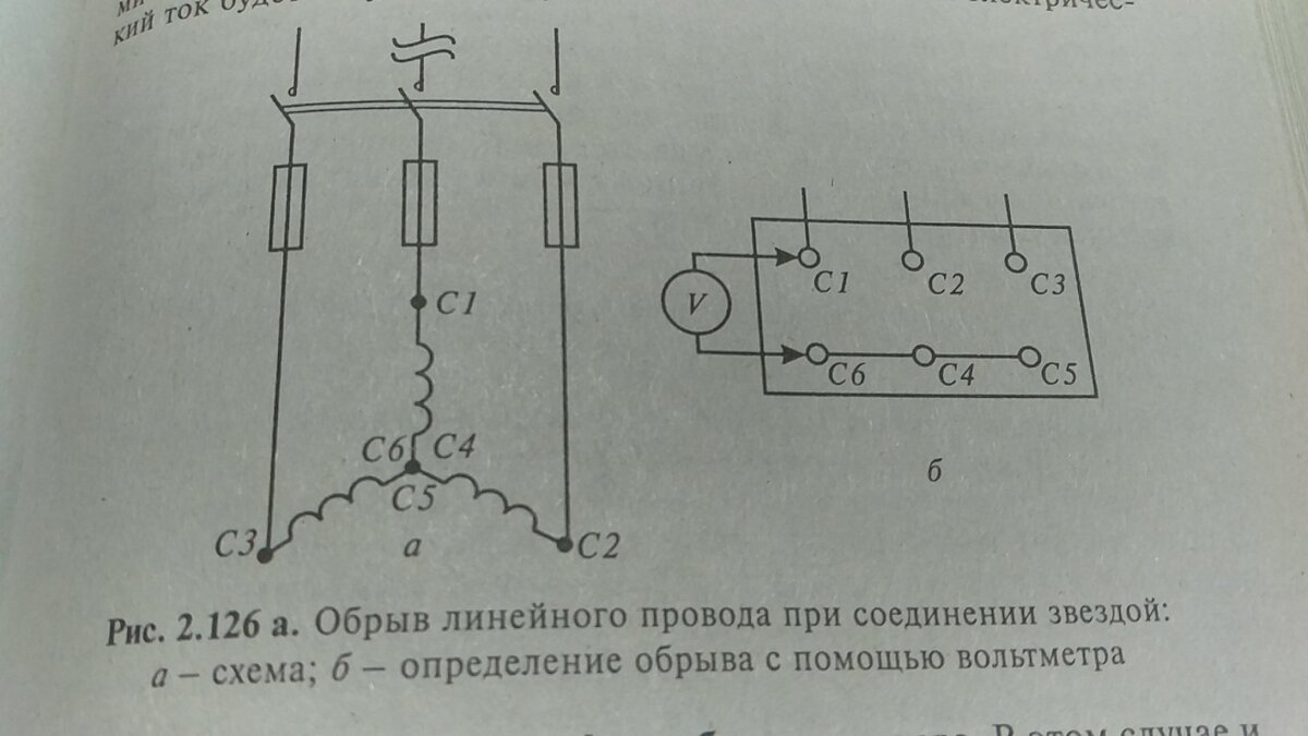 Обрыв одного линейного провода в трехфазной сети, питающей асинхронный двигатель