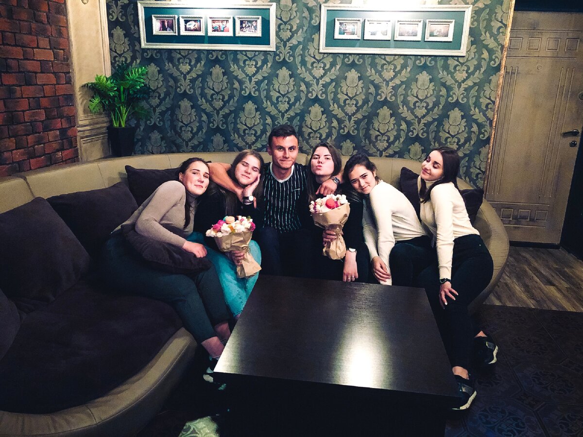 Ну уж любим мы совместные дни рождения. В этом поздравлении не так много событий но и не мало эмоций. Сначала мы под предлогом покинули квартиру и подговорили друга, что бы в определенное время он забрал девчонок. Вечером ничего не ожидав девочкам завязывают глаза и везут их в заранее подготовленное место, где мы их ждали. Там же мы арендовали квест комнату, и развязали им глаза, когда они уже находились внутри квеста. Это было ужасно интересно всем вместе оказаться в накаляющей нервы обстановке. После удачного прохождения квеста мы привели их в комнату с домашним кинотеатром, там проигрывалось видеопоздравление, в котором мы сами записали для них песню. Под конец девочкам вручили сладкие букеты, которые сделали сами) ссылка на видео с поздравлением...