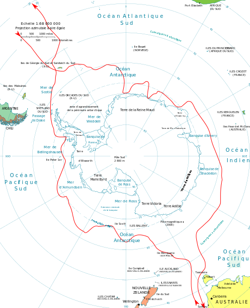 Уточню - они не просто приблизились к шестому континенту, а совершили "кругосветку" вокруг Антарктиды. Вот маршрут плавания экспедиции