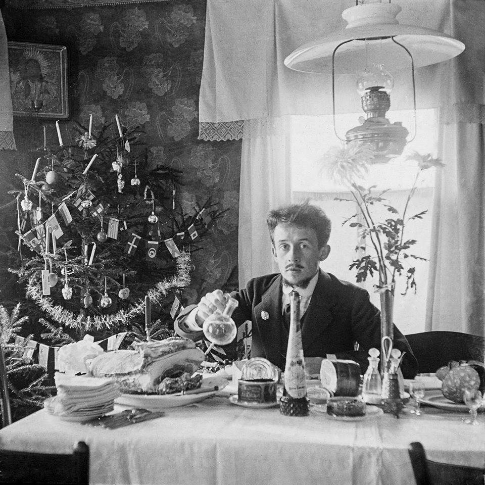 Автопортрет у рождественской елки. Георгий Несытов, 1910 – 1913 год, г. Ярославль, Которосльная наб., д. 24, из архива ярославских дворян Георгия Владимировича Несытова и его отца Владимира Ивановича Несытова.