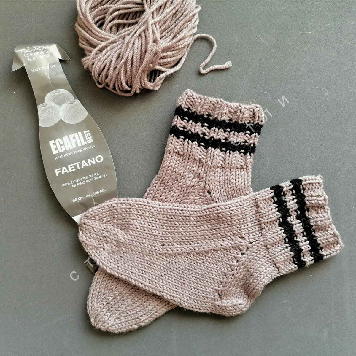 Вязаные женские, мужские и детские носочки - лучший подарок для ваших ног в холода. С чем ассоциируется вязание спицами у большинства людей? В первую очередь с теплыми носочками из шерстяной пряжи. И чаще всего мы помним из детства, что носили очень колючие носки, связанные из остатков пряжи, обычно в полоску, разноцветные. Но мир не стоит на месте. Технологии развиваются, человечество стремится к комфорту. Новые технологии приходят и в сферу обработки натуральной шерсти. Очень важные качества для волокон – это комфорт для кожи, чтобы не приходилось, как в детстве, поддевать хлопковые носочки. А еще очень важно, чтобы изделия не садились при машинной стирке. Я выбираю пряжу Faetano от Ecafil Best, меринос с качествами super wash. В названии волокон слово superwash появляется после того, как шерсть прошла определенную обработку. При всем процессе воздействия качество шерсти частично утрачиваются. Но в результате изделия из шерстяной пряжи можно стирать, что очень актуально для таких