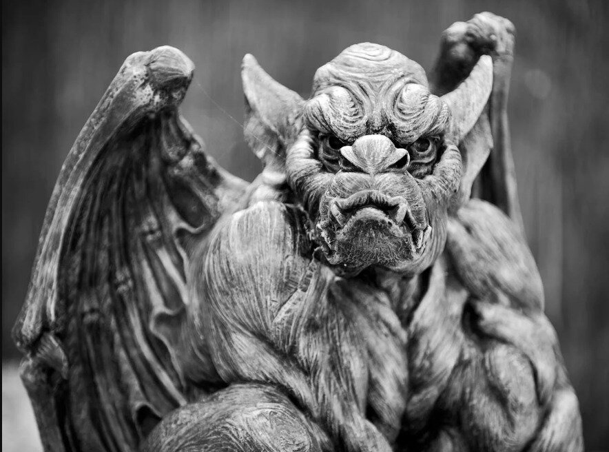 Мистическими существами горгулий начали считать уже ближе к современному времени. И здесь речь идет не только о внешнем виде скульптур, а их назначении. Считалось, что подобные композиции удачно отпугивают злых духов и нечисть. Самый яркий пример — статуи на фасаде Нотр-Дам де Пари, однако, основное их назначение все те же сточные трубы.