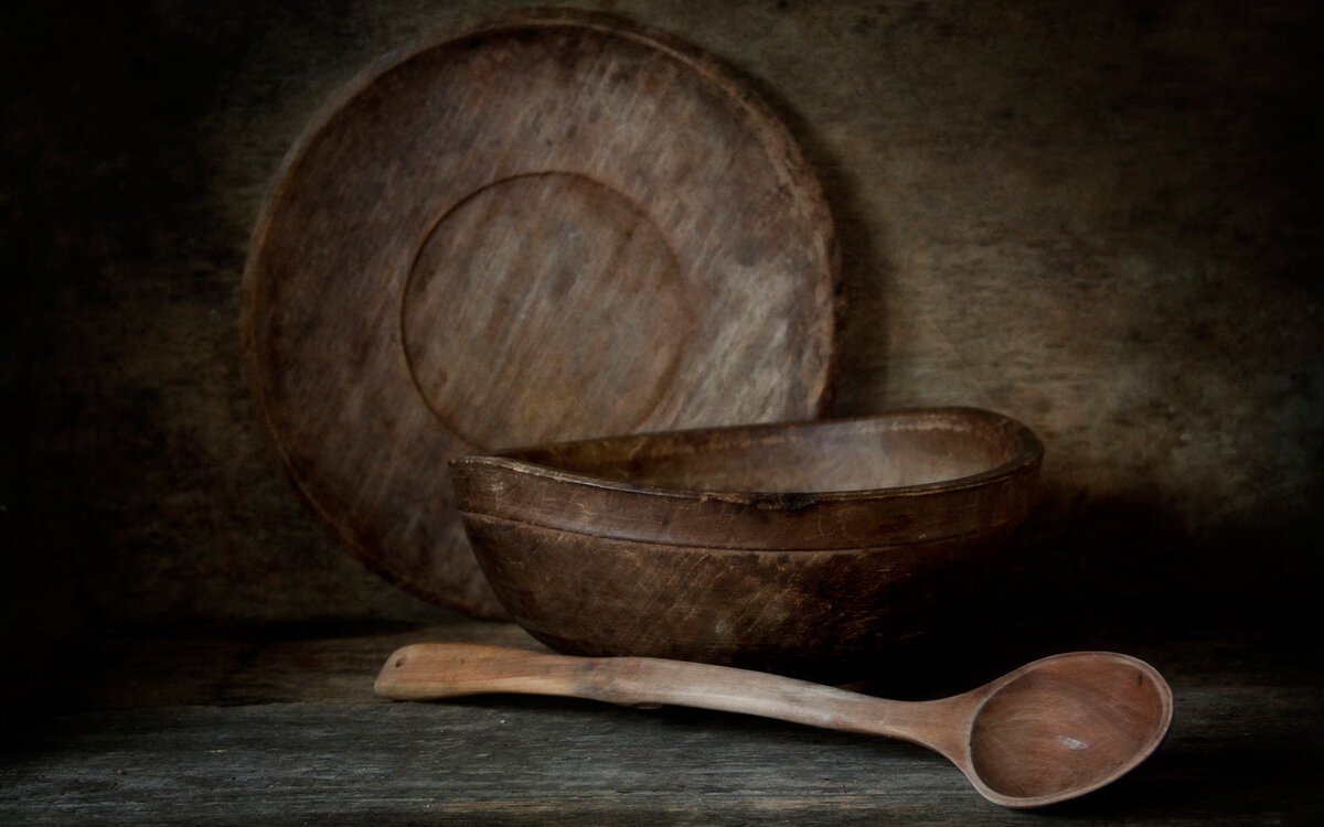 Исторические исследования показывают, к началу XIX века на столах обывателей и крестьян глиняная и железная посуда была полностью заменена на деревянную. Помимо рядовых тарелок и плошек использовались ступки, братины, чарочки, кубки и многое другое.