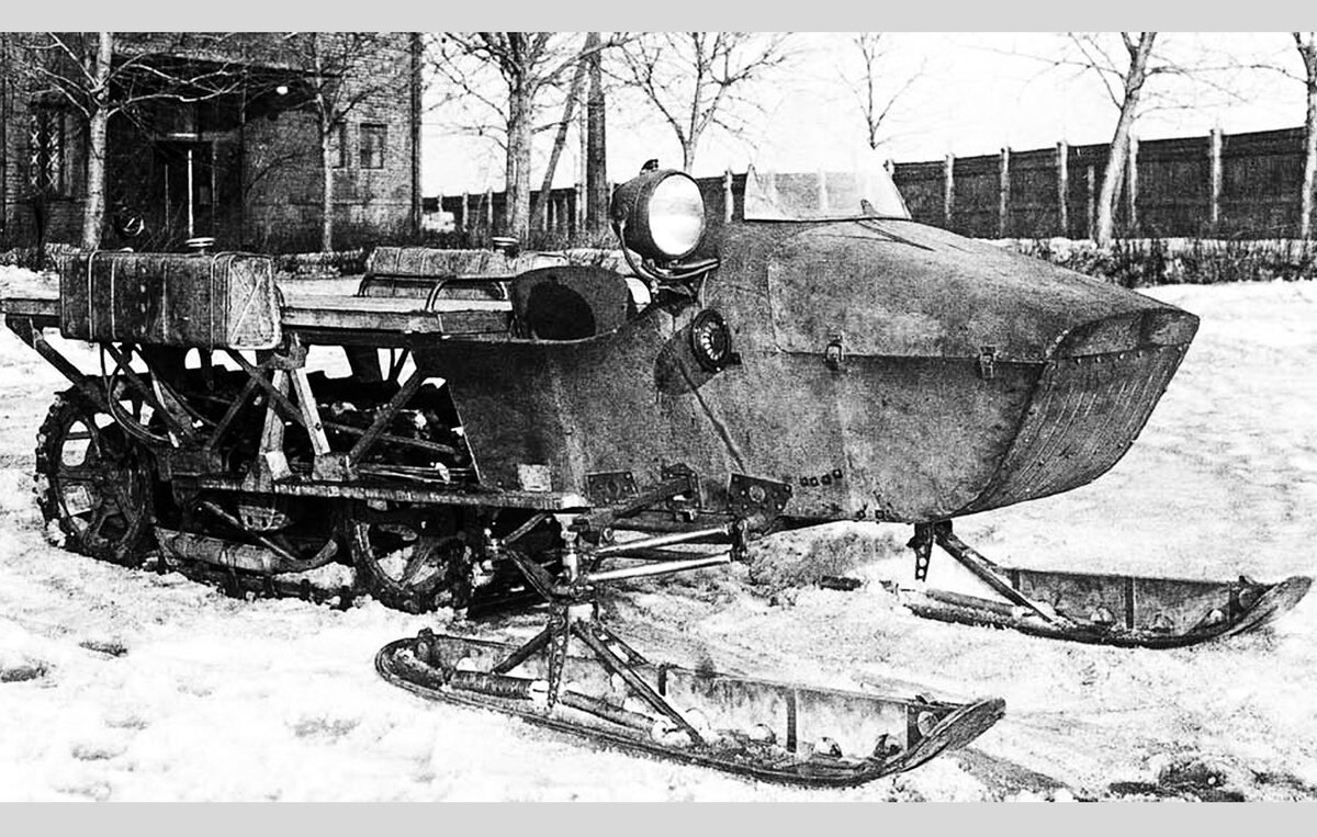 В 1942 году в НАМИ была создана конструктором Борисом Шишкиным интересный снегоход – МС-1, который предназначался для эвакуации раненых с поля боя. Оригинальной особенностью МС-1 был гусеничный движитель обеспечивающий высокую проходимость по снежной целине. Обращала внимание независимая подвеска лыж на поперечных рычагах с поперечной листовой рессорой. Для управления применялся руль автомобильного типа. Позади спинки водительского сиденья была выполнена длинная плоская платформа, на которую могли укладываться носилки с раненым. Двигатель М-72 (746 см3) оппозитной компоновки устанавливался внутри гусеничного движителя. На то время четырехтактный мотор М-72 был самым мощным (22 л.с. при 4500 об/мин) из доступных в то время в СССР. Испытания, проведённые зимой 1943 года показали: снегоход обладал высокой проходимостью по снегу, но имели недостаточную надежность. Главное нарекание – к двигателю: через полчаса работы при температурах, близких к нулевой, он настолько перегревался
