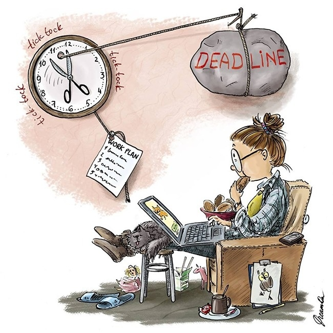 Я обожаю дедлайны. Всегда жду их с большим нетерпением и любовью в сердце. Тщательно готовлюсь к встрече: генералю квартиру, перемываю окна (и неважно, что на дворе зима и мороз – 30), глажу белье, готовлю еду на три месяца вперед и пеку торт, с тоской поглядывая на рабочий стол. И вот он, момент истины: завтра с утра сдавать проект! Часы бьют 22:00, а это значит, что через десять часов моя голова превратится в тыкву, если я не сяду за работу сейчас же.