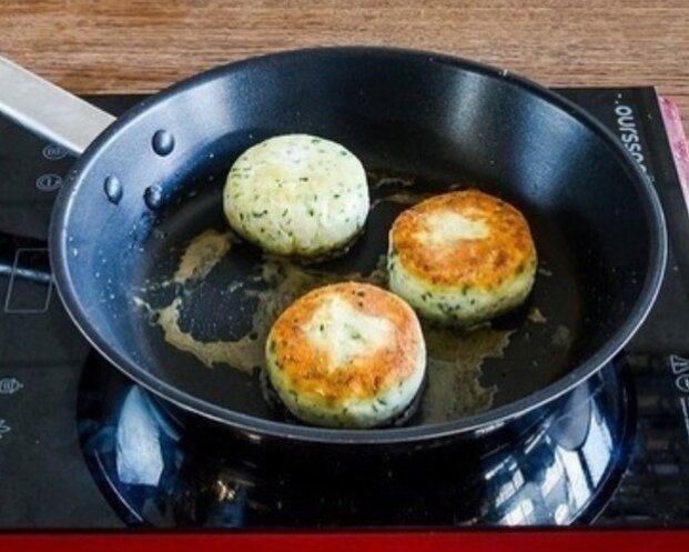 Сырники с брынзой Ингредиенты: Творог (9%) - 350 г Мягкая брынза, фета или любой другой мягкий рассольный сыр - 250 г Мука - 4 ст. л. Яйцо - 1 шт. Разаная зелень (укроп, петрушка, кинза) - 1 пучок Свежемолотый черный перец - по вкусу Растительное масло - для жарки Соль - по вкусу Приготовление: 1. Творог смешать до однородности с сыром. Добавить яйцо и муку. 2. Зелень мелко порубить, смешать с творожной массой. Попробовать и добавить перец и, если нужно, соль (если сыр сам по себе не очень соленый). 3. Сформировать сырники и обвалять их в муке. Обжарить их на разогретой сковороде на растительном масле с двух сторон до золотистой корочки. 4. Подавать со сметаной, добавив в нее по желанию ложку соевого соуса.