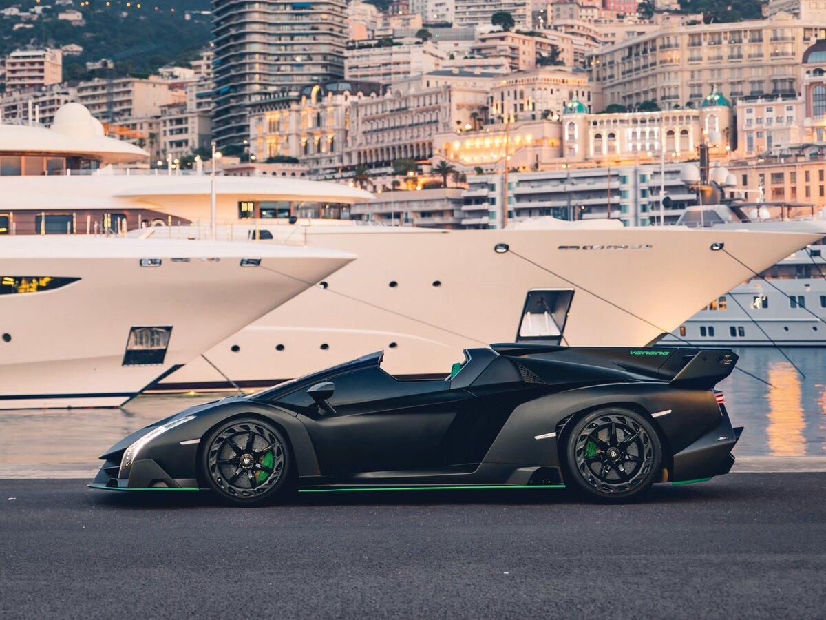 В 2013 году на автосалоне в Женеве компания Lamborghini, отмечая свое 50-летие, представила суперкар Veneno (в переводе с испанского - яд). Возможно, Veneno - самый дикий автомобиль Lamborghini - компании, вошедшей в историю как раз благодаря экстремальным суперкарам :) Но даже для Lambo, дизайн впечатляющий! Про Veneno я уже публиковал материал, но пройти мимо великолепных фотографий аукционного дома RM Sotheby’s решительно невозможно! На фоне Veneno, гиперкар Ferrari LaFerrari выглядит скромно и не агрессивно. При этом стилисты Lamborghini не просто обостряли дизайн, они старались добиться максимально эффективной аэродинамики, особенно в скоростных поворотах. Каждая линия кузова функциональна для обеспечения максимальной прижимной силы и охлаждения двигателя. Энерговооруженность Veneno обеспечена 6,5-литровым V12 мощностью 750 л.с, что на 50 больше, чем у оригинального Aventador LP700-4. Прибавка мощности оказалась возможной благодаря изменению системы охлаждения двигателя и модифици