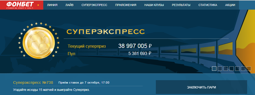 БК Фонбет предоставляет возможность пользоваться легальным, официально признанным тотализаторам “Суперэкспресс”.