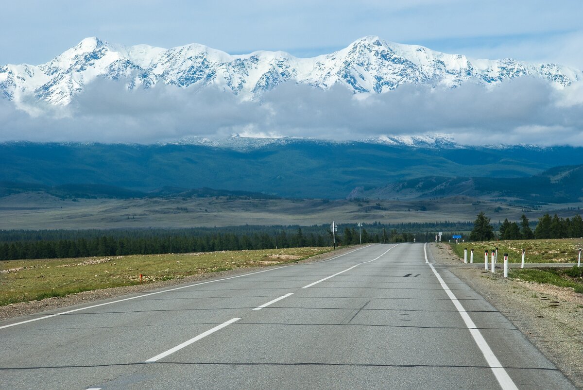 Итак, все, кто едет по Чуйскому тракту до монгольской границы, обязательно проезжают этот участок дороги. Более того, здесь — известная локация для фотосессий, потому как уже очень хорош вид отсюда на Северо-Чуйский хребет.