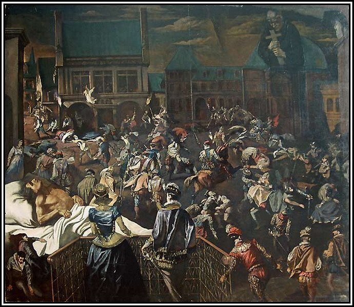 Варфоломе́евская ночь - массовое убийство гугенотов во Франции, устроенное католиками в ночь на 24 августа 1572 года, в канун дня святого Варфоломея. По различным оценкам, в Париже в этот день погибло около 2000 человек, а по всей Франции в погромах было убито около 30 тысяч гугенотов.