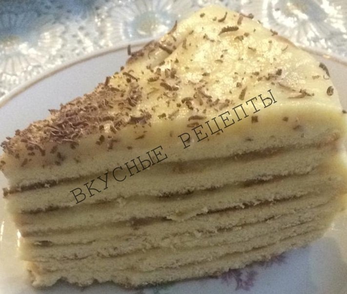 Захотелось сладенького? Очень быстрый рецепт приготовления торта без духовки. Мы готовили его в студенческом общежитии. Как торт называется, не знаю. Но очень вкусный. Продукты: 1 банка сгущённого молока, 1 яйцо, 600 г муки, 1 чайная ложка соды (погасить уксусом), Приготовление: Все продукты перемешать, тесто должно быть тугое. Разделить тесто на 8 частей. Тонко раскатать каждую часть по форме сковороды. На сухой сковороде обжариваем каждый корж с двух сторон до красивого цвета. Процесс очень быстрый. Все коржи у меня испеклись всего за 5 минут. Пока коржи остывают, делаем заварной крем: Продукты: 0,5 литра молока, 4 яйца (или 5 желтков), 1 стакан сахара, 2 столовые ложки муки, 1/4 порошка ванилина (можно без него). Приготовление: яйца взбить с сахаром, добавить муку, хорошо перемешать. Влить холодное молоко, хорошо перемешать. Ставим на огонь и варим, всё время помешивая. Когда закипит, снимаем с огня и добавляем ванилин. Холодные коржи смазываем кремом и сверху посыпаем измельчё