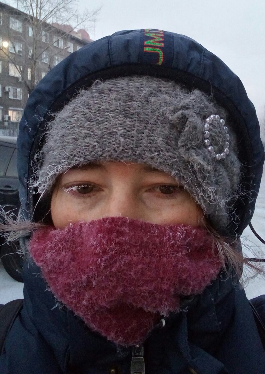 На фото я сегодня по пути на работу. Волосы и ресницы "поседели" от инея, а от обморожения меня спасает только балаклава. Каждый новый день - это преодоление себя. Сначала я укутываю в многослойную одежду маленького сына, потом укутываюсь сама и мы вываливаемся из подъезда в суровое зимнее утро. На улице ещё темно и горят фонари, температура ниже 30 градусов мороза. Сын, как и я укутан в шерстяной снуд по самые глаза. В воздухе стоит морозная дымка, смешанная с постоянным смогом, от которого воздух кажется горьким на вкус и пахнет дымом. Я тащу сопротивляющегося сына за рукав и сравниваю себя с большим ледоколом, на худой конец с мощной баржой, которая тащит на буксире маленькую лодочку. И вот мы преодолели этот путь в гору и пришли в сад. Я быстро раскутываю ребёнка и бегу на работу. Но вот незадача - мои любимые трамваи почему-то не вышли на линию и нужно втискиваться в случайную маршрутку. Держаться там не за что и я то хватаюсь рукой за бархатную обивку салона, то за случайного пассажира - такого же пленника тесной маршрутки. Одно "радует" - я получила бесплатный сеанс массажа всего тела локтями, спинами и сумками пассажиров.