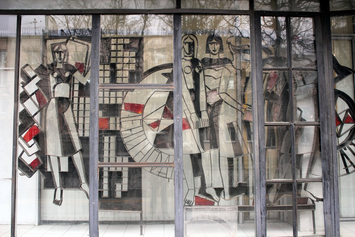 Массовое авангардно-официальное искусство позднего СССР явление настолько уникальное, что про него можно написать целую диссертацию. Так называемые "произведения" делались буквально из подручных материалов и украшали не только какие-нибудь задворки, но и центральные улицы, библиотеки, кинотеатры. Сейчас от тех времён мало что осталось, разве что где-то в глухой провинции, и то, как правило, в ужасном состоянии. Но вот Гатчина стала приятным исключением. Там на центральной улице сохранилась очень интересная магазинная витрина. Железо, сварочный аппарат. Красиво проработан герб страны. Особое внимание уделено женским грудям, хотя сюжет вроде бы не эротический, но художник решил, что это важно. Когда-то подобное творчество в избытке имелось в любой точке Союза. Теперь это - исторический раритет. Относиться к таким авторским работам можно по разному, но факт есть факт - это часть нашей истории. Спасибо жителям города Гатчина за бережное отношение к наследию предков.