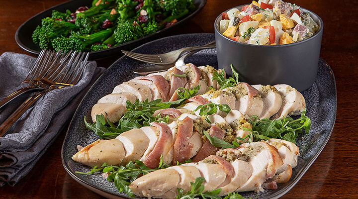 ОБЗОР РЕЦЕПТА Комбинируйте готовые блюда с собственной начинкой для приготовления блюд без стресса. ВРЕМЯ ПОДГОТОВКИ: 10 минут ВРЕМЯ ПРИГОТОВЛЕНИЯ: 30 минут Для горчичной заправки Положите все ингредиенты для заправки в банку с крышкой с завинчивающейся крышкой и энергично встряхните, чтобы смешать. Отложить в сторону. Готовьте курицу в соответствии с инструкциями на упаковке. Кратко приготовьте брокколи в кипящей воде, чтобы сохранить хруст, затем процедите и поставьте на тарелку для сервировки. Встряхните медово-горчичную заправку еще раз, чтобы убедиться, что она хорошо сочетается, затем вылейте ее на брокколи и посыпьте клюквой и жареным миндалем. Нарежьте курицу и аккуратно выложите на блюдо с листьями рукколы между каждым нарезанным куриным филе в качестве гарнира. Подавать с салатом из брокколи и картофелем.