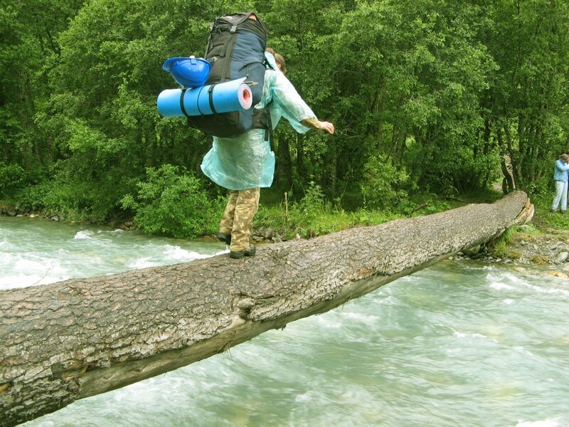 Кроме этого можно растянуть веревку на нужной высоте над бревном. Она будет использоваться в качестве перил. Кстати, по бревну нельзя бегать. Да и переходить реку нужно по одному, чтобы избежать перегрузки.