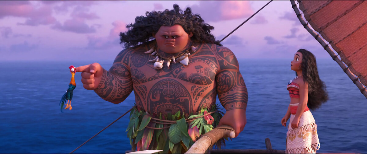 Всем привет, друзья. Сегодня мне стало интересно «Кто же всё таки родители Мауи?» из всем известного мультфильма «Моана». Не будем долго тянуть, поехали. Для начала я решил сделать небольшую характеристику, чтобы найти хотя бы что-то, за что можно было бы зацепиться. Итак, Мауи относительно невысокого роста, хотя он и повыше, чем Моана, но очень мускулист и широк в плечах. Из одежды он носит классическую полинезийскую юбку из древесных листьев, а шею украшает простая верёвка с набором различных зубов, клыков и бивней. У него грива длинных чёрных волос и коричневая кожа, сплошь покрытая подвижными сюжетными татуировками, которыми Мауи весьма гордится. Примечательно, что со слов самого Мауи татуировки он себе не делал, они появлялись самостоятельно и свидетельствуют о его подвигах. Его татуированная персонификация - мини-Мауи - присутствует в каждой сюжетной татуировке и всегда вооружена волшебным крюком. Также мини-Мауи способен воззвать к совести хозяина, направляя его в сторону д