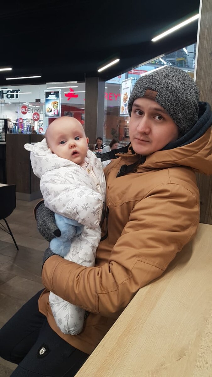 Дочь ни капли не капризничала. Ей было всё интересно! После KFC зашли в продуктовый магазин, за мелкими покупками и даже там, в длинной очереди она вела себя стойко!