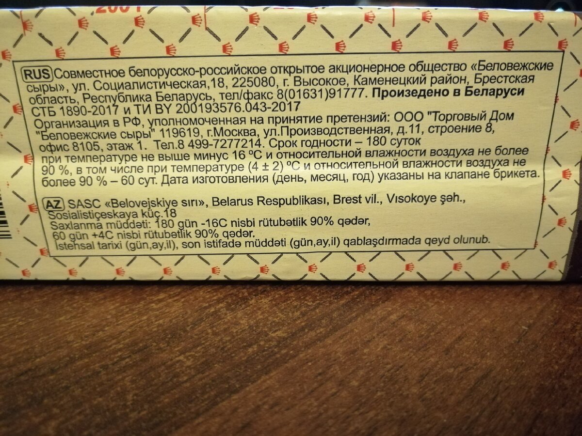Состав продукта предельно прост: пастеризованные сливки из коровьего молока. И изготовлено по СТБ 1890-2017 и ТИ BY 200193576.043-2017. Как я понял, это типа российских ГОСТов.