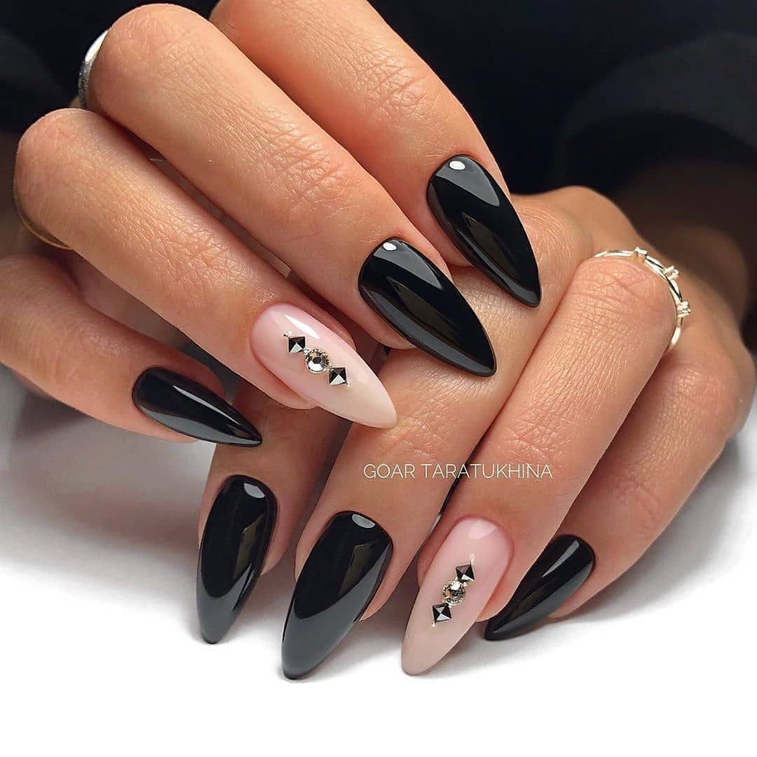 Вы считаете черный дизайн ногтей мрачным и скучным? Не стоит торопиться с выводами, вы еще не в курсе модных тенденций 2020. Девушек ожидают шикарные темные нейл-арты с глиттером, геометрией, втиркой, стразами и другим декором, призванным показать всю красоту и очарование черного цвета. Черный маникюр долгое время расценивался как нечто невзрачное. Черный дизайн чаще всего выполняли девочки-подростки, желающие показать свою индивидуальность. О качественном покрытии ногтей тогда речи не шло, поэтому черный маникюр выглядел грязно и неаккуратно. С появлением гель-лаков черный маникюр пережил новый виток развития. Дизайн стал выглядеть роскошно и благородно. Помимо глянцевых нейл-артов, на ногтях девушек стали красоваться бархатные и нежные матовые дизайны. Предлагаем вам познакомиться с ТОП-8 великолепных идей маникюра в черном цвете, которые гарантированно будут смотреться шикарно на ваших длинных ногтях.