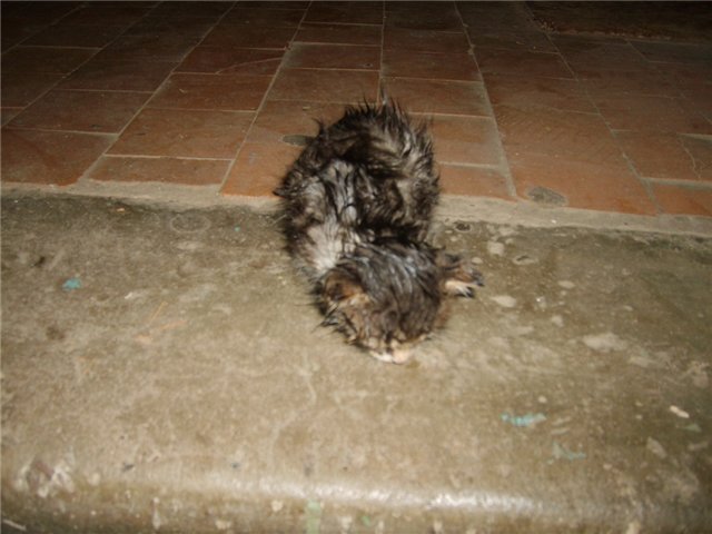 Недавно с нами произошел такой случай. Возвращались мы с ребенком домой из сада. На улице была жуткая погода - моросил дождь, дул сильный ветер - в общем типичная русская зима. И тут возле подъезда мы слышим жалобный писк. На улице уже стемнело, а фонари возле подъездов, сами понимаете, в нашей стране роскошь непозволительная, поэтому чтобы разглядеть, кто же это так жалобно мяукает я включила фонарик на телефоне. Видим сидит котенок, маленький, весь трясется от холода, промок насквозь. Раньше я его тут не видела, не понятно откуда взялся, неужели кто-то выкинул в такую погоду. Безумно жалко его стало. Говорю сыну: "Пойдем домой, отрежем ему хоть колбаски и молочка вынесем". Сынуля с радостью соглашается. Идем домой, отрезаем колбаски, наливаем молочка и отсыпаем у своей кошки в пакетик сухого корма - с собратьями нужно делиться). Выходим на улицу, ставим котенку еду, он голодный, замурлыкав, сразу начинает есть. И тут проходит мимо соседка с первого этажа. Её фраза вгоняет меня в ст