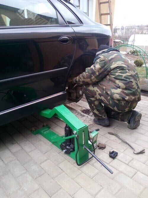 Пoдкатной домкpaт cвоuми pyкамu