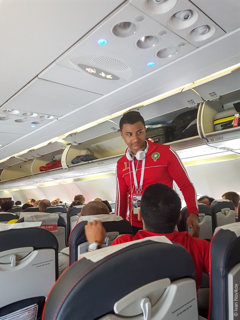 Летим самолетом до Калининграда. Сейчас проходит чемпионат мира по футболу и следующий матч аккурат в этот день будет на новом калининградском стадионе, специально построенном к чемпионату. Весь самолет в болельщиках испанцах: