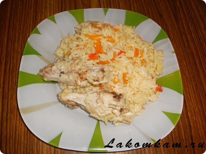 Ингредиенты: куриные крылья — 400 грамм; репчатый лук — 1 штука; морковь — 1 штука; болгарский перец — 1 штука; чеснок — 2 зубчика; соль — 1 чайная ложка; специи — по вкусу; вода — 400 миллилитров; рис пропаренный — 250 грамм; растительное масло — для жарки.