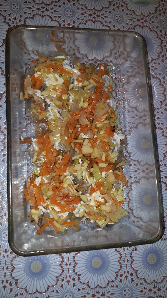 Чтобы организм получал необходимые питательные вещества, нужно питаться мясными, рыбными, овощными блюдами. Хотя бы один раз в неделю надо кушать рыбу, не зря в советское время в общественных столовых каждый четверг был рыбный день. Готовили рыбные котлеты, запеканки, рыбу жареную, мойву жареную, салаты из рыбы готовили. Сегодня я напишу рецепт рыбы (минтай и форель) запеченной с овощами. Сначала подготовила рыбу: помыла, сделала чистое филе, посолила, поперчила, сбрызнула лимонным соком. Кусочки минтая уложила на, смазанную маслом, форму для запекания. На сковороде пожарила лук репчатый с морковью, добавила половину яблока (яблоко нарезала соломкой) и пол чайной ложки сахара. Пожарила до полу готовности и выложила на рыбу. Сверху намазала сметаной (можно с майонезом). Далее я взяла лук порей (немного) и жарила также до полу готовности. На лук с морковкой укладывала картофель, нарезанный кружочками. На картофель укладывала кусочки форели. На форель сверху выложила жареный лук порей