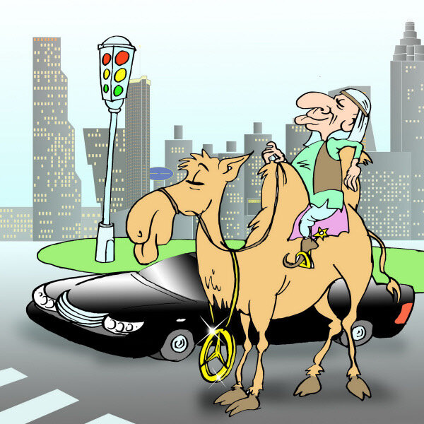 На восточном базаре сидит Мужик, лепешки продает, рядом своего верблюда поставил, чтоб от солнца загораживал. Покупатель спрашивает у него: - Который час, уважаемый? Мужик поворачивается, ладонью отодвигает свисающие верблюжьи яйца и грит: - Полчетвертого! - О-о-о! Какой у вас удивительный верблюд! И часы покупать не надо! Друг! Продай верблюда, а? - Да ты что? Я его не продаю... Долго торговались, в конце-концов Мужик уступил верблюда за большие тугрики. Довольный приобретением покупатель спрашивает: - А как пользоваться-то верблюжьими часами? - Вот сядь на мое место (тот сел... ) и смотри сюда (отодвигает верблюжьи яйца... ) - видишь во-о-он там часы на минарете? ————————————————— - Скажи, Виктор, а за что Наташа, в первый день знакомства врезала тебе в глаз? - Мы гуляли с ней по зоопарку - жутко заикаясь начал объяснять тот - Я увидел как на дереве целуются две обезьянки и сказал «Наташа, а не последовать ли нам их примеру?». И получил! - Но почему? - Да потому, что пока я всё это в