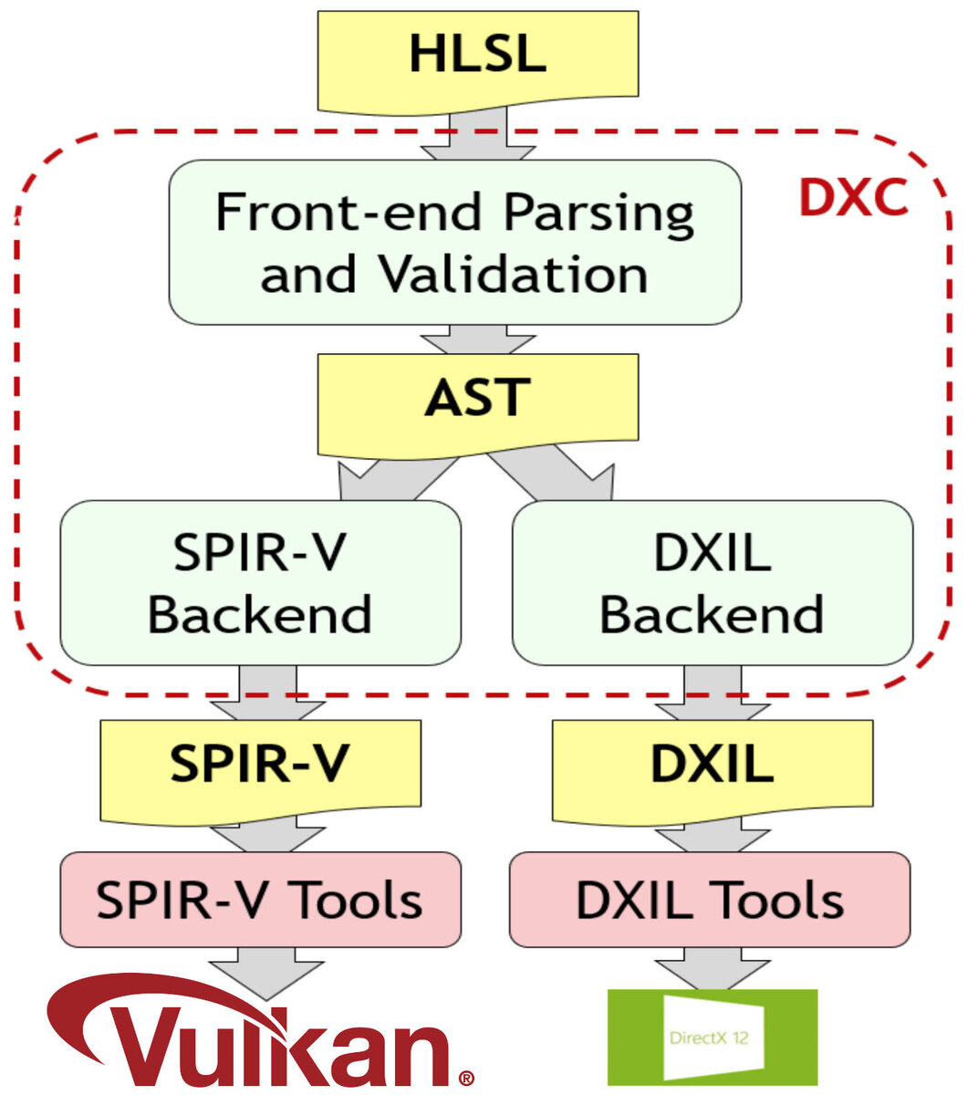 - Доведена до готовности к повсеместному применению реализация языка программирования шейдеров HLSL, разработанного компанией Microsoft для DirectX. Поддержка HLSL в Vulkan даёт возможность использования одних HLSL-шейдеров в приложениях на базе Vulkan и DirectX, а также упрощает трансляцию из HLSL в SPIR-V. Для компиляции шейдеров предлагается использовать штатный компилятор DXC, который был открыт компанией Microsoft в 2017 году и базируется на технологии LLVM. Поддержка Vulkan реализована через отдельный бэкенд, позволяющий транслировать HLSL в промежуточное представление шейдеров SPIR-V. Реализация охватывает не только все встроенные возможности HLSL, включая математические типы, потоки управления, функции, множества, типы ресурсов, пространства имён, Shader Model 6.2, структуры и методы, но и позволяет использовать специфичные для Vulkan расширения, такие как VKRay от NVIDIA. В режиме HLSL поверх Vulkan удалось организовать работу таких игр, как Destiny 2, Red Dead Redemption II, Assassin’s Creed Odyssey и Tomb Raider.
