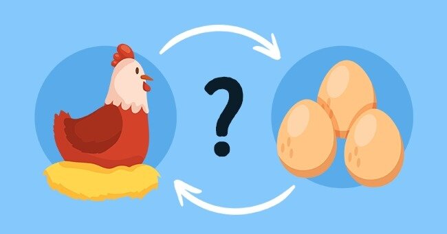 Что появилось раньше – курица или яйцо? Об эту загадку сломали немало копий в философских, религиозных и научных дискуссиях. Точку зрения биологов поддерживают и философы. Для них яйцо является первичнее курицы. Красивое решение в своё время предложил философ Герберт Спенсер, живший в Британии в 19 веке. Его дословная цитата звучит так: «Курица — лишь способ, которым одно яйцо производит другое яйцо». Очень изящно из загадки был удалён один из её объектов. И только теология упорно настаивает на том, что курица возникла раньше яйца, опираясь на выдержки из Библии, согласно которым бог создал всё живое сразу в неизменном виде, как мы их можем наблюдать сейчас. Но современную науку без доказательной базы не переспоришь: яйцо появилось раньше.