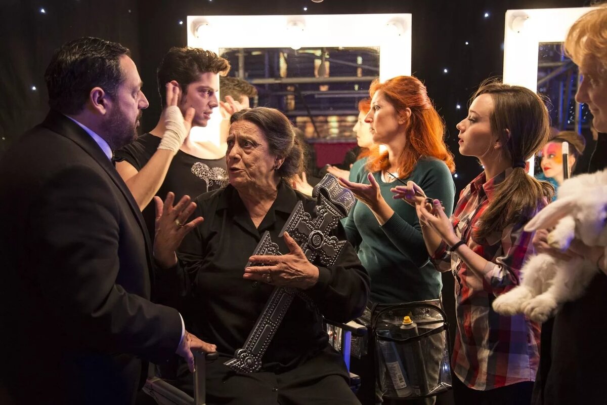 Фильм испанского режиссера Алекса де ла Иглесия. Дата выхода 2015 год. В одном из павильонов Мосфильма испанского телевидения ведутся съемки новогоднего телешоу. Процесс затягивается, все идет наперекосяк. Все участники съемки заперты в павильоне, поскольку снаружи бушует акция протеста, организованная несправедливо уволенными сотрудниками. Засмотревшись на прекрасную деву оператор роняет съемочный кран прямо на зрителей из массовки. Ведущие, по совместительству муж и жена, погрязли в склоках. Нестареющий престарелый Рафаэль ведет борьбу с юным секс-символом, наступающим ему на пятки, одновременно пытаясь уберечься от киллера, нанятого сумасшедшим автором песен. И все вокруг все больше и больше превращается в фарс и фантасмагорию. Певички, шантажистка, аферист-продюсер, чудаковатая старушка с крестом, актер-неудачник, красотка-ведьмочка. Все дерутся, целуются, ругаются, мирятся и просто снимают праздник. Смотреть этот репортаж из сумасшедшего дома легко и весело. Заряд бодро