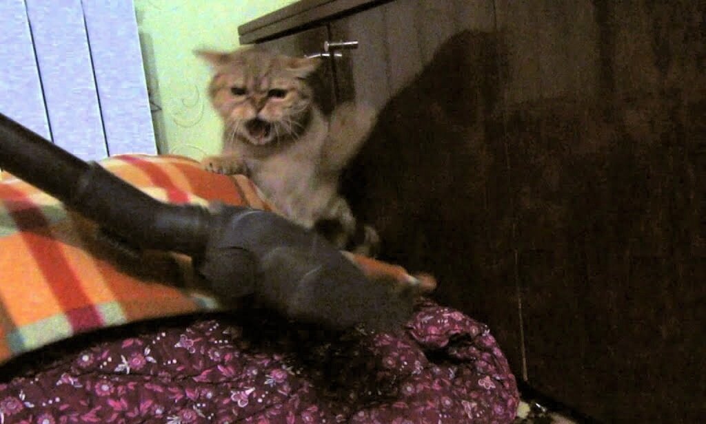 Каждый кото владелец наверняка замечал, что его питомец боится некоторых бытовых приборов, а иногда даже бывают приступы паники. Самым главным врагом в доме для кошки является пылесос. Давайте разберемся, почему же этот прибор вгоняет кошку в панику. Пылесос издает очень много шума. Особенно это относится к старым моделям пылесосов. Современные модели работают на много тише, но для острого кошачьего слуха это все равно очень громко. Поэтому кошки убегают подальше от шумного монстра. Страх перед непонятным огромным гудящим предметом. Когда этот монстр с длинным проводом, шлангом и какими-то трубками начинает ползать по квартире, кошку охватывает паника, и она стремиться спрятаться подальше от этого кошмара. Вибрации, исходящие от пылесоса, также могут пугать кошку. Эти животные улавливают малейшие вибрации на поверхности земли, например перед землетрясением, и испытывают страх и волнение, предчувствуют опасность. Соответственно прячется в безопасное место. Некоторые кошки воспринимают п