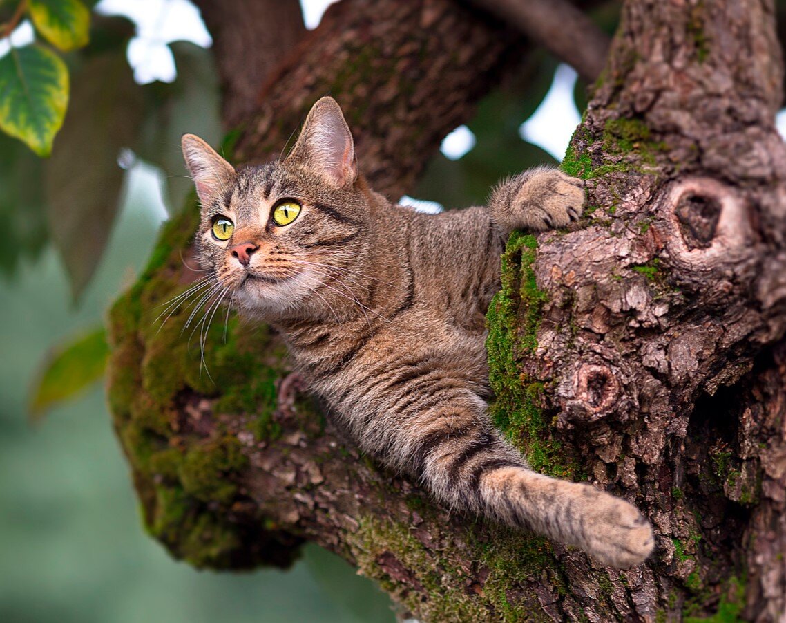 Кошкам можно позавидовать. Они чудесно и легко взбираются на тоненькие ветки. Даже упитанные тяжелые коты могут дремать на опасном месте! Настоящие охотники — дикие и прекрасные.