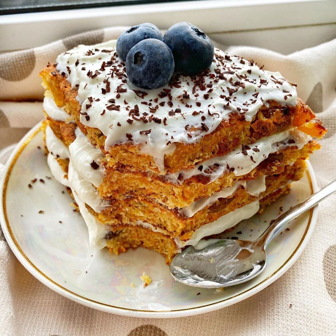 КБЖУ на 100 г:154,6/6/2,2/28,1 Ингредиенты: 🎃80 г моркови 🎃70 г изюма 🎃1 ст.л кокосовой стружки 🎃2 ст.л любой муки 🎃подсластитель по вкусу 🎃2 яйца 🎃1/2 ч.л разрыхлителя Крем: 🎃125 г мягкого творога 🎃подсластитель Приготовление: Морковь натереть на мелкой тёрке,добавить остальные ингредиенты,все перемешать Вылить на сковороду и готовить 5 минут Остудить и нарезать на 4 части как пиццу Крем👇🏻 Мягкий творог смешать с подсластителем Собираем торт👇🏻 Корж-крем-корж и тд Украшаем по желанию Все просто и быстро😍 Приятного аппетита🤤