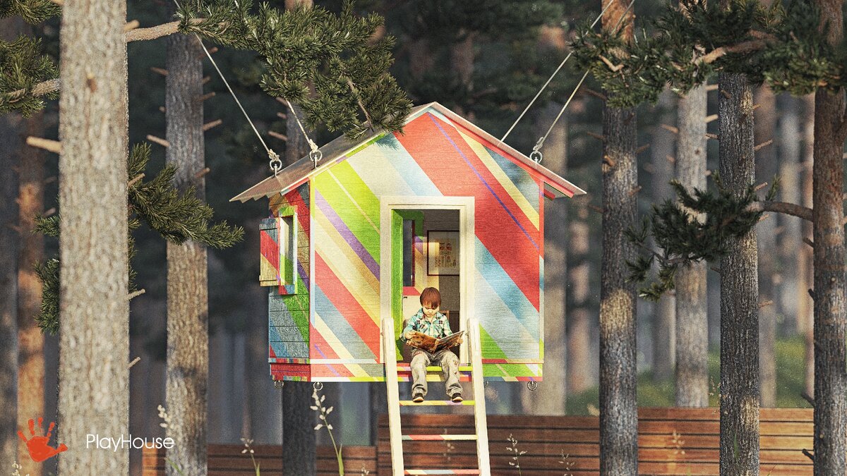 Наша логика проста, ребенок должен покрасить домик вместе с родителями самостоятельно, это первое. И много света, крышу домика наши архитекторы сделали из поликарбоната, прозрачного пластика, что позволяет обеспечить отличную видимость и не сидеть в темном углу.